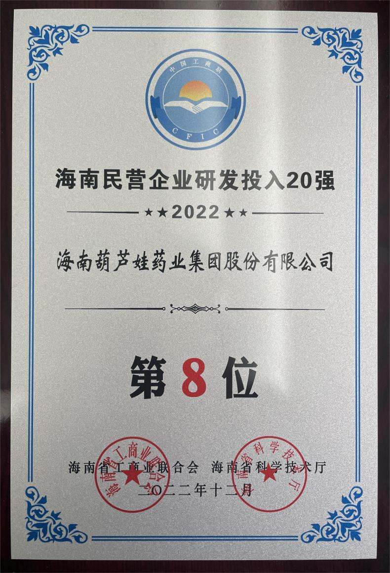 12月23日,2022海南民营企业50强和研发投入20强发布会在海口举行。会上发布了“2022海南民营企业50强”“2022海南民营企业研发投入20强”榜单和分析报告。利来w66药业再次荣登两榜,在海南民营企业50强榜单中位列第25位,较去年上升8位,这也是公司连续三年登榜;在海南民营企业研发投入20强中位列第8位,较去年上升7位。