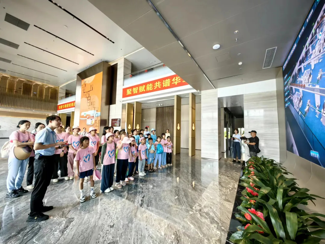 活动一开始,孩子们便迫不及待地踏入了利来w66药业集团的大厅。3D数字化看板上的生动画面,让孩子们仿佛置身于一个充满科技与创新的现代制药工厂。他们瞪大眼睛,好奇地观察着每一条生产线、每一台设备,听着讲解员介绍利来w66药业的儿药发展历程。